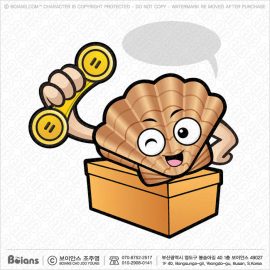 Boians Vector Clam Character holding a telephone and box. SKU: BVCD000772