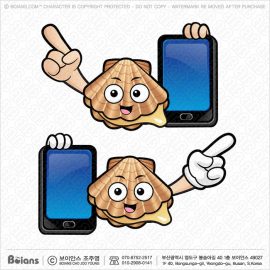 보이안스 벡터 가리비 캐릭터는 스마트폰을 들고 있다. SKU: KOREA003270
