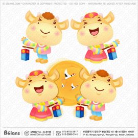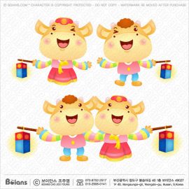 보이안스 벡터 황소와 암소 일러스트는 초롱불을 들다. 소 캐릭터 디자인. SKU: KOREA004254