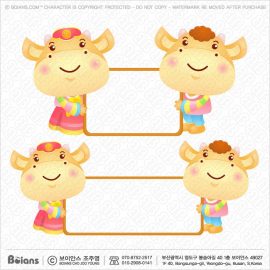 보이안스 벡터 칼라링. 소 캐릭터는 정면으로 앉다. 12지신 소띠 캐릭터. SKU: KOREA001592