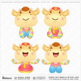 보이안스 벡터 칼라링. 소 캐릭터는 정면으로 앉다. 12지신 소띠 캐릭터.