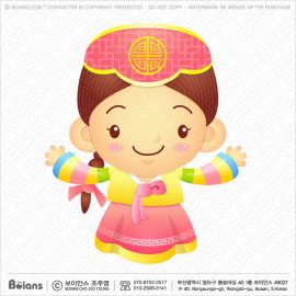 보이안스 벡터 소녀 캐릭터는 양손으로 환영하다. 한국 전통문화 일러스트. SKU: KOREA001085