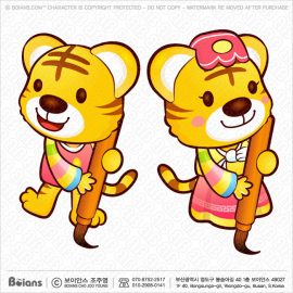 보이안스 벡터 한국 커플 호랑이 캐릭터는 안내하다. 범띠 캐릭터 일러스트. SKU: KOREA004452