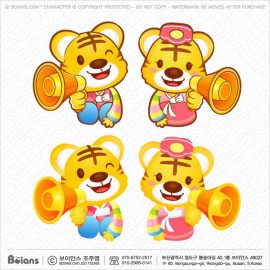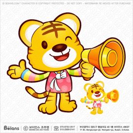 보이안스 벡터 호랑이 캐릭터는 확성기를 들다. 호랑이띠 캐릭터 일러스트. SKU: KOREA004451