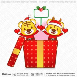 보이안스 벡터 커플 호랑이 캐릭터는 큰 선물상자 속에 들어가 있다. 호랑이띠 캐릭터 일러스트. SKU: KOREA004447