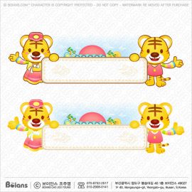 보이안스 벡터 한국 커플 호랑이 캐릭터는 큰 보드를 잡다. 범띠 캐릭터 일러스트. SKU: KOREA004448