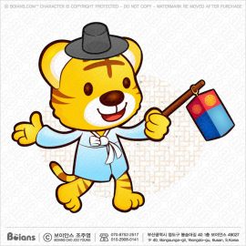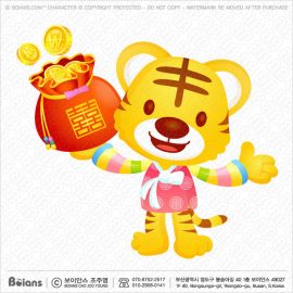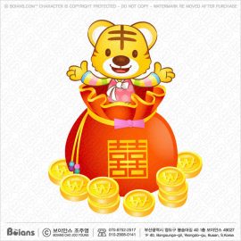 보이안스 벡터 한국 호랑이 캐릭터는 복주머니를 들다. 범띠 캐릭터 일러스트. SKU: KOREA004456