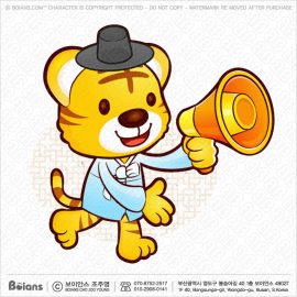 보이안스 벡터 한국 선비 호랑이 캐릭터는 확성기를 들다. 호랑이띠 캐릭터 일러스트. SKU: KOREA004455