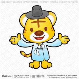 보이안스 벡터 한국 선비 호랑이 캐릭터는 양손으로 환영하다. 범띠 캐릭터 일러스트. SKU: KOREA004458