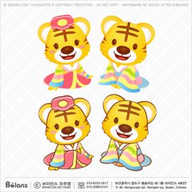 보이안스 벡터 한복을 입은 커플 호랑이 캐릭터는 절하다. 호랑이띠 캐릭터 일러스트. SKU: KOREA004459