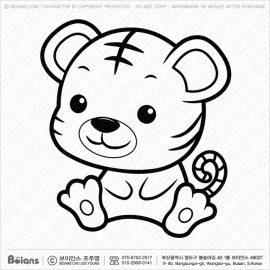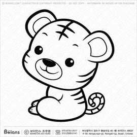 보이안스 벡터 칼라링. 호랑이 캐릭터는 정면으로 앉다. 12지신 호랑이띠 캐릭터. SKU: KOREA001594
