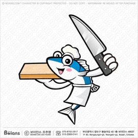 보이안스 벡터 고등어 캐릭터는 칼과 도마를 들고있다. SKU: KOREA003392