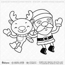 보이안스 벡터 칼라링. 산타와 루돌프 사슴 캐릭터는 홍보하다. 크리스마스 일러스트 시리즈. SKU: KOREA002404