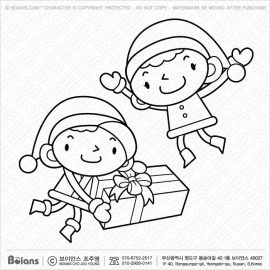 보이안스 벡터 칼라링. 산타 커플 캐릭터는 선물을 받고 즐거워한다. 크리스마스 일러스트 시리즈. SKU: KOREA002472