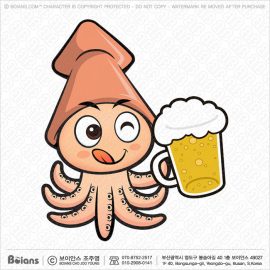 보이안스 벡터 귀여운 오징어 캐릭터는 맥주를 마시다. SKU: KOREA003116