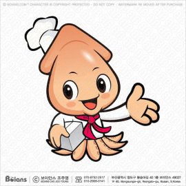 보이안스 벡터 요리사 오징어 캐릭터 안내를 하고있다. SKU: KOREA003127