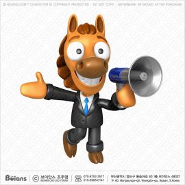 보이안스 3D 말 캐릭터 안내와 확성기를 들다.