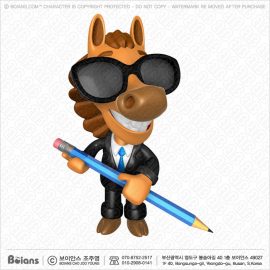 보이안스 3D 말 캐릭터 큰 연필을 잡고 있다.
