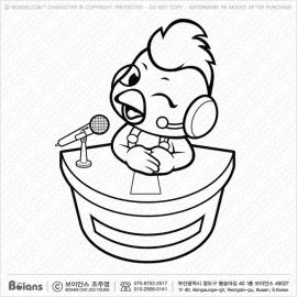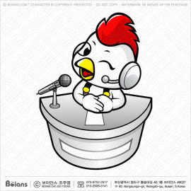 보이안스 벡터 칼라링 닭 마스코트 안내데스크에서 홍보를 하고있다. SKU: KOREA001332