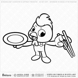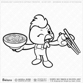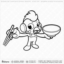보이안스 벡터 칼라링 닭 마스코트 젓가락과 그릇을 들다. SKU: KOREA001486