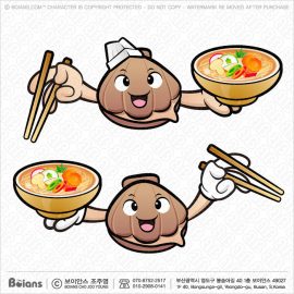 보이안스 벡터 가리비 캐릭터는 젓가락과 그릇을 들고있다. SKU: KOREA003339