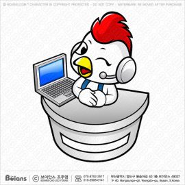 보이안스 벡터 칼라링 치킨 마스코트 안내데스크에서 노트북을 하다. SKU: KOREA001250