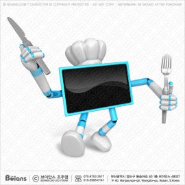 Boians 3D Chef Cyan Television Character is holding a Knife and Fork.