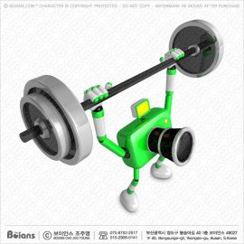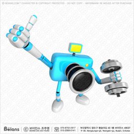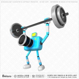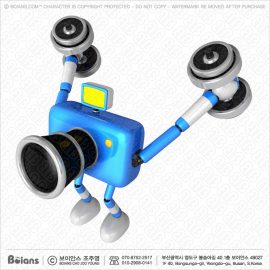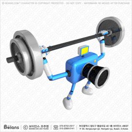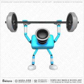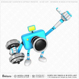 Boians 3D Cyan Camera Character is dumbbell curl playing. SKU: B3DC001591