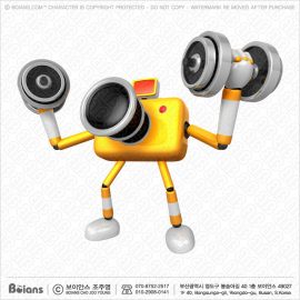 Boians 3D Yellow Camera Character is dumbbell curl playing. SKU: B3DC001605