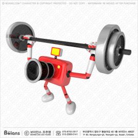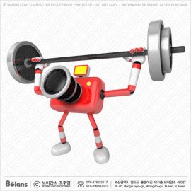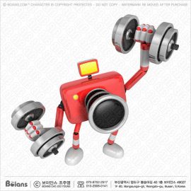 Boians 3D Red Camera Character is dumbbell curl playing. SKU: B3DC001621