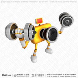 Boians 3D Yellow Camera Character is dumbbell curl playing.