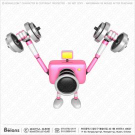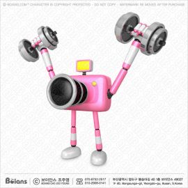 보이안스 3D 핑크 카메라 캐릭터 아령으로 어깨 운동.