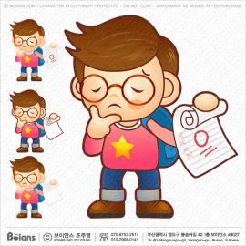 보이안스 벡터 남자아이 캐릭터는 나쁜 시험 성적. 교육 그림. SKU: KOREA005134