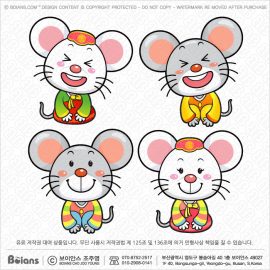 보이안스 벡터 2020년 쥐 캐릭터 한복 입고 세배 절. 경자년 쥐띠 일러스트. SKU: KOREA005545
