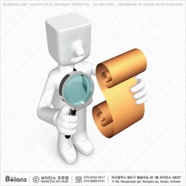 보이안스 3D 네모 피플 마스코트 돋보기로 파피루스를 보다.