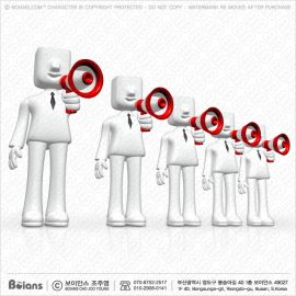Boians 3D White Human Character speaking by loudspeaker.