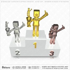 보이안스 3D 네모 인간 캐릭터 시상대 위의 수상자들.