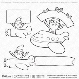 Boians Vector Black And White Santa character are promoted on an airplane. Christmas Day Isolated Illustration. SKU: BVCD003273