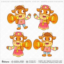 Boians Vector Bull and Cow Character apprised the news into a loudspeaker. Illustration of Isolated Beef. SKU: BVCD004333