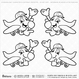 Boians Vector Black And White Transport Plane mascot is a guide gesture. Illustration of Isolated airplane and aircraft. SKU: BVCD004183
