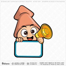 Boians Vector Korean Squid Character holding a loudspeaker and board. SKU: BVCD000552