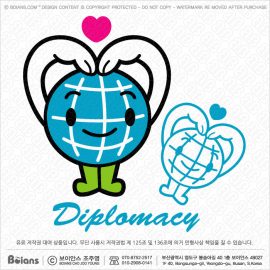 Boians Vector Globe character makes a love gesture. Department of foreign affairs Illustration. SKU: BVCD004747