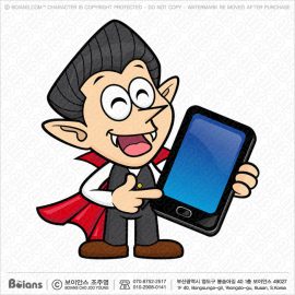 Boians Vector Dracula Character is holding a Smartphone. Halloween Day Isolated Vampire Illustration. SKU: BVCD004044