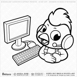 Boians Vector Black And White Chicken Mascot and Computer.