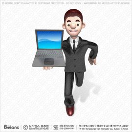 보이안스 3D 세일즈맨 캐릭터는 노트북을 들고 있다.