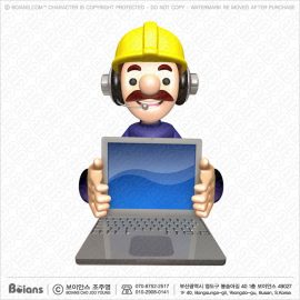 보이안스 3D 공사장인부 캐릭터 양손으로 노트북을 잡다.