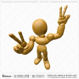 보이안스 3D 목각인형 캐릭터 양손으로 승리의 제스처.