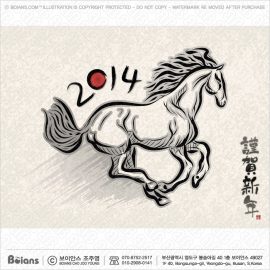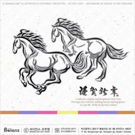 Boians Vector The two Horse vigorously to running calligraphy greeting card. SKU: BOIS000445