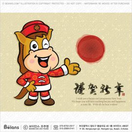 Boians Vector Korean traditional personnel bowing in Horse mascot. SKU: BOIS000444