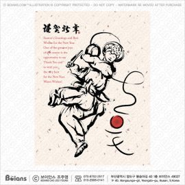 Boians Vector Korea dance samulnori vigorously to jump calligraphy greeting card. SKU: BOIS000447